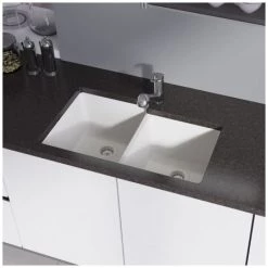 Rene 31-1/8″ Drop In Double Basin Stainless Steel Kitchen Sink with Basin Rack and Basket Strainer