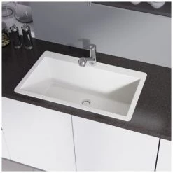 Rene 33″ Drop In Single Basin Granite Composite Kitchen Sink with Basin Rack and Basket Strainer