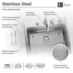 Rene 23″ Drop In Single Basin Stainless Steel Kitchen Sink with Basin Rack and Basket Strainer