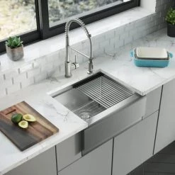 Rene 23-3/4″ Farmhouse Single Basin Stainless Steel Kitchen Sink with Basin Rack and Basket Strainer