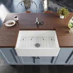 Rene 29-7/8″ Farmhouse Single Basin Fireclay Kitchen Sink with Basin Rack and Basket Strainer