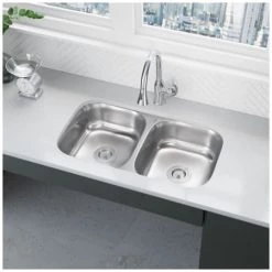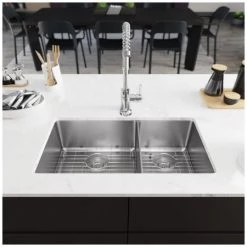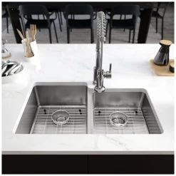 Rene 31-1/8″ Drop In Double Basin Stainless Steel Kitchen Sink with Basin Rack and Basket Strainer