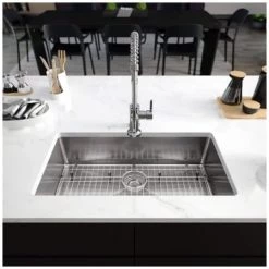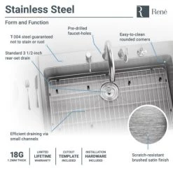 Rene 31-1/8″ Drop In Single Basin Stainless Steel Kitchen Sink with Basin Rack and Basket Strainer