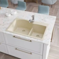 Rene 33″ Drop In Double Basin Granite Composite Kitchen Sink with Basin Racks and Basket Strainers