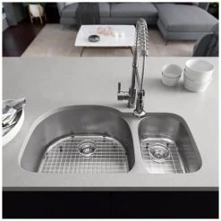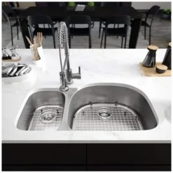 Rene 33″ Undermount Double Basin Granite Composite Kitchen Sink with Basin Rack and Basket Strainer