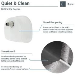 - Sound dampening pads diminish noise and sprayed-on coating creates a moisture barrier
