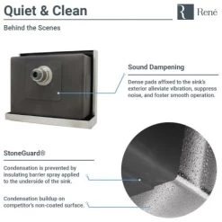 - Sound dampening pads diminish noise and sprayed-on coating creates a moisture barrier