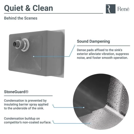 - Sound absorbent construction to prevent dish clatter and under cabinet condensation