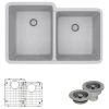 - Includes basket strainer, stainless steel grid, fitted cutting board