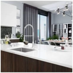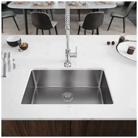 - Tight, curved corners in an Extra wide, single bowl, contemporary form