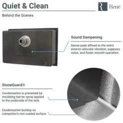 - Sound dampening pads diminish noise and sprayed-on coating creates a moisture barrier