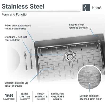 - 304 Grade stainless steel in the industry standard 18-gauge thickness