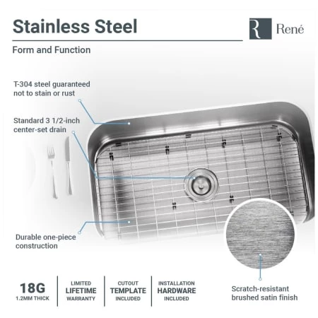 - 304 Grade stainless steel in the industry standard 18-gauge thickness