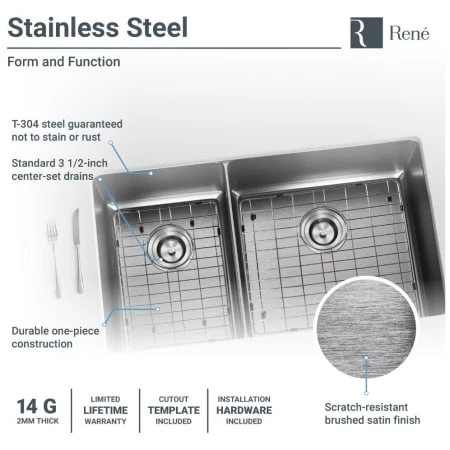 - 14-Gauge, 304-grade stainless steel that is 50% heavier than the industry norm
