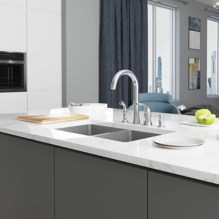 - Sink features dual basins with a 50/50 split