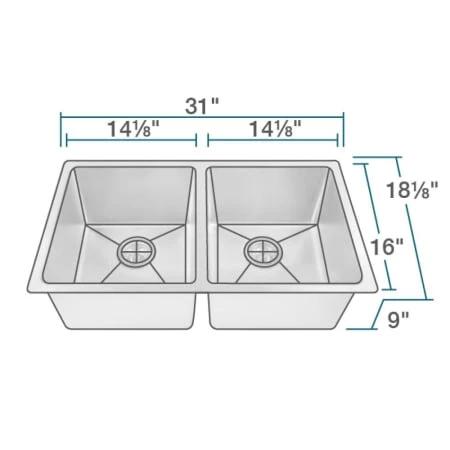 - Sink Length: 31″ (left to right)