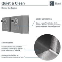 - Sound dampening pads diminish noise and sprayed-on coating creates a moisture barrier