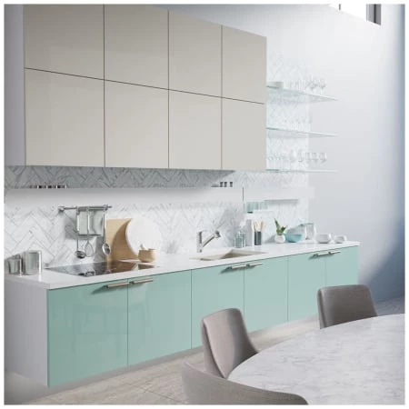 - Equal bowls with tight curved corners provide spacious contemporary flair