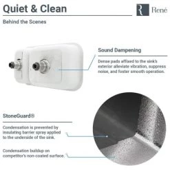 - Sound dampening pads diminish noise and sprayed-on coating creates a moisture barrier