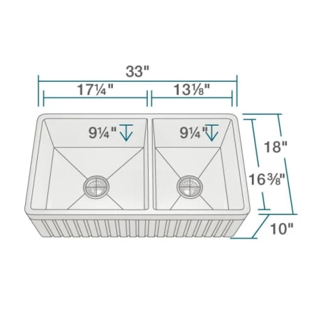 - Basin Dimensions (Left): 17-1/4″ L x 16-3/8″ W x 9-1/4″ D