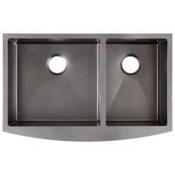 A clean modern farmhouse design makes the 33″ Atlas double-bowl Sink an instant focal point in our space. Perfect for multi-tasking, 60/40 split offers a large basin for washing dishes and a smaller bowl to tackle food preparation or other chores. Made with 304-grade, 16-gauge stainless steel, this basin is as resilient as it is sleek. The dark gunmetal black PVD finish is guarded by a liquid-repellant and scratch-resistant coating to withstand the harshness of everyday use. Completing its superior construction, sound-absorbing pads and a thin layer of foam insulation are applied to the outer walls to prevent condensation buildup. Match an optional set of drains with your choice of faucet to complete the look.