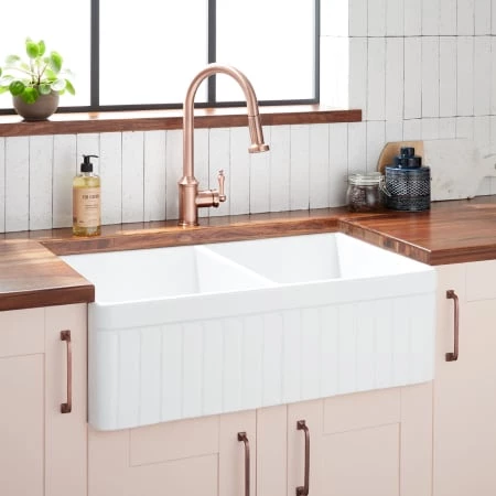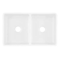 The 33″ Curington double-bowl farmhouse sink is a stylish and practical addition to your kitchen. Space distribution for the bowls has been divided equally, providing organization to carry out your cleaning and food preparation tasks. The fireclay material with porcelain enamel coating is resistant to dents, stains, and scratches, making it perfect for a high-use space.