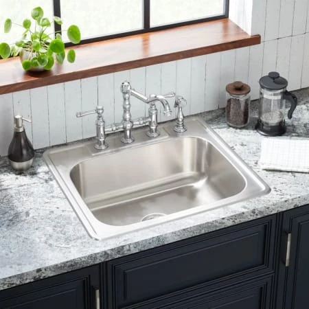 This rectangular single-well drop-in sink will be perfect for any job in your outdoor bar, utility room or food preparation area in your kitchen. Handcrafted of 20-gauge stainless steel, this sink comes with four pre-drilled faucet holes.