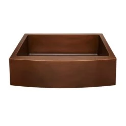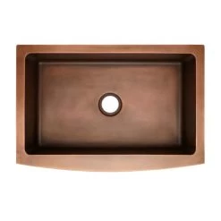 Made of 16-gauge copper, this stunning farmhouse sink features a lovely, gentle curve on the apron front and a spacious basin ideal for food preparation and cleanup. Perfect for those who desire both functionality and aesthetics.
