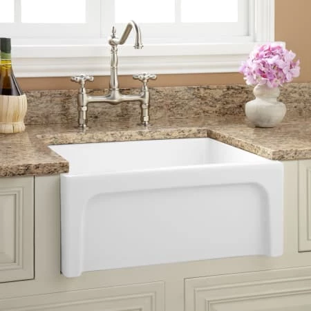 Add classic beauty to your kitchen counter with the 24″ Risinger Farmhouse Sink, made in Italy of durable fireclay. A generous single well lets you easily soak and wash large cooking pots, while the smooth surface makes cleanup a breeze.