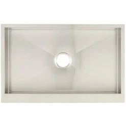 Featuring a sizable single basin, the 33″ Sitka Farmhouse Sink easily holds large pots and pans. Perfect for all your needs, this durable basin is made of 304-grade stainless steel that requires very little maintenance. On the bowl’s underside, sound absorption pads dampen noise made by running water and maneuvering dishes, while the undercoating prevent condensation buildup in the cabinet below.